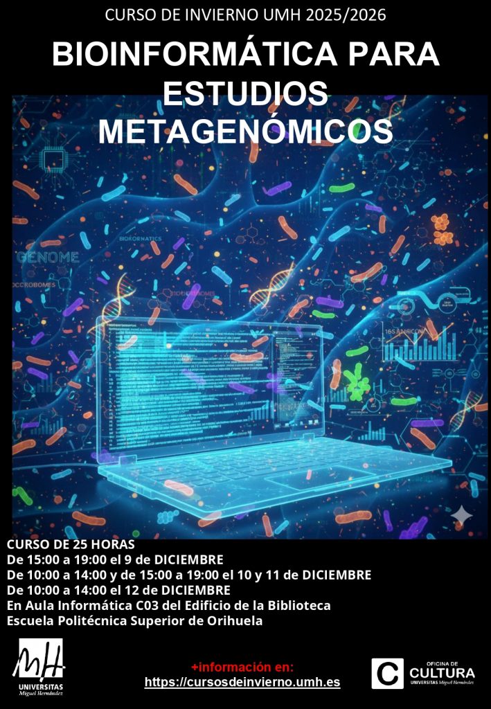 Nos complace destacar que el curso será impartido por nuestra investigadora del CIAGRO-UMH, María José Argente Carrascosa, junto con la participación del Dr. José Ramón Pacheco Arjona (UADY–CICY, México), investigador reconocido en bioinformática, genómica comparada y estudios del microbioma.